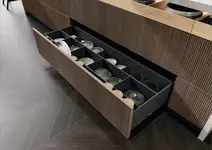 Das Vionaro V8-Schubkastensystem überzeugt durch seine nur 8 mm schlanke Zarge im perfekten 90°-Winkel. Ob Standard, Crystal für Glas oder gestaltbarer Innenblende – Sie bestimmen den Look. Das Soft-close, Tipmatic oder das Tipmatic Soft-close System bieten höchsten Komfort und zeitgemäße Technik für jede Anwendung.