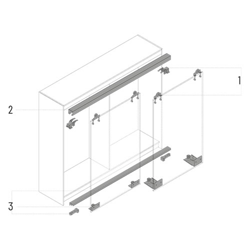Die Laufteile sind das Herz eines Schiebetürystems. Sie werden bei obenlaufenden Systemen an der oberen Kante der Schiebetür montiert, bei untenlaufenden Systemen an der unteren Kante der Schiebetür. Bei jedem System sind Endanschläge für das Laufprofil im Lieferumfang enthalten, die die Tür stoppen.