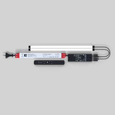 Der Anschluss der Leuchten ist für den Tischler/Schreiner ganz einfach und erfolgt via Steckverbindung. Hinter das Vorschaltgerät (EVG) mit dem Netzstecker kommt ein Funkschalter (X-Mitter) oder ein Funkempfänger für die Fernbedienung (S-Mitter). Sollen mehrere Leuchten oder Leuchtenkanäle angeschlossen werden, steckt man dahinter einen Verteiler. Dann kommen die einzelnen Leuchten. Fertig.