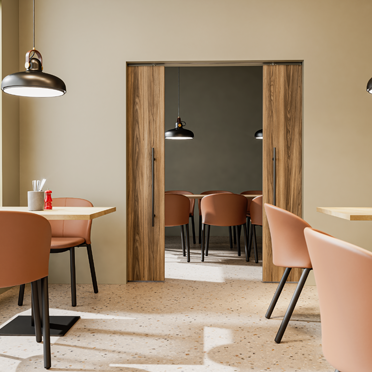 Der Restaurant Shop | Raumtrennsystem Divina und Schiebetür Helm