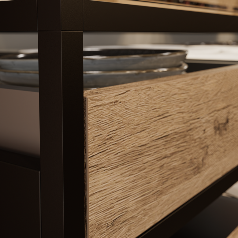 Möbel mit Patina verbreiten einen Hauch von Nostalgie und sind daher zunehmend gefragt. Gleichzeitig möchten Kunden natürlich nicht auf den Komfort modernster Beschlagstechnik verzichten. Die Lösung sind neue Möbel im Vintage-Look. Sie verbinden die Sehnsucht nach Nostalgie mit größtmöglicher Funktionalität. Für den Bau der Möbel finden Sie bei uns am Lager eine Vielzahl an passenden ABS-Möbelkanten mit Altholzdekoren. Wir liefern Ihnen diese innerhalb kürzester Zeit in allen Breiten. Hier im Feinkost-Segment wurde unsere ABS-Kante Altholz grau miniperl eingesetzt.