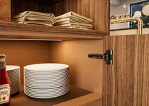Perfekt gedämpfte Möbeltüren gehören heute zum Standard. Mit dunklen Topfscharnieren von Hettich, Blum oder Grass geben Sie Ihren Möbeln noch mehr Ausstrahlung: Wertvolle dunkle Hölzer oder andere edle Oberflächen bekommen ihren großen Auftritt – denn das dunkle Scharnier hält sich vornehm im Hintergrund.