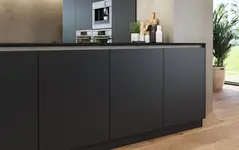 Die matte Variante verfügt über einen Glanzgrad <5 und beeindruckt durch ihre samt-matte Optik und „Soft-Touch“- Haptik. Sie ist mit der sogenannten „Anti-Fingerprint“- Funktion ausgestattet. Die hochglänzende Variante verfügt über einem Glanzgrad >90. Sie besticht durch die besonders ruhige Oberfläche mit Spiegeleffekt und bietet eine trendstarke Farbauswahl im Hochglanzsegment. Die Möbelteile sind mit dekorgleichen ABS-Kanten in der Stärke 1 mm in Nullfugenoptik verarbeitet.