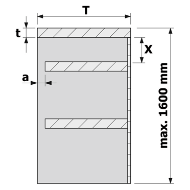 Seitenstärke t 19 mm Führung vorgesetzt oder innenliegend