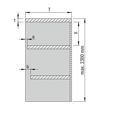 | X: | H: 300-1600mm = 173 mm / H: 1601-2300mm = 224 mm |