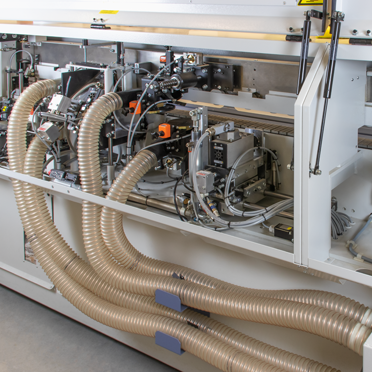 Tip: If you often process high-gloss or super matt surfaces, you should clean the machine parts and in particular the transport tracks with a suitable product. That prevents dust and dirt from settling in the still fresh glue joint.