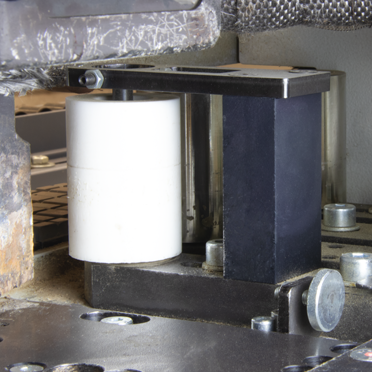 With some machines, you have to manually adjust the retaining device at the edging feed to the respective edging height. If it is not sufficiently fixated, the edging will warp when glued on.