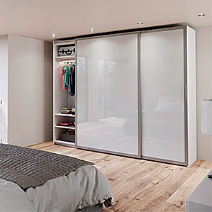 SysLine S est un système de portes coulissantes idéal pour les meubles de taille moyenne. Il est parfaitement adapté pour les armoires ayant 3 ou 4 étagères remplies de classeurs ou il peut être également utilisés pour les meubles bas, sideboards ou meubles hauts dans les cuisines.