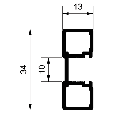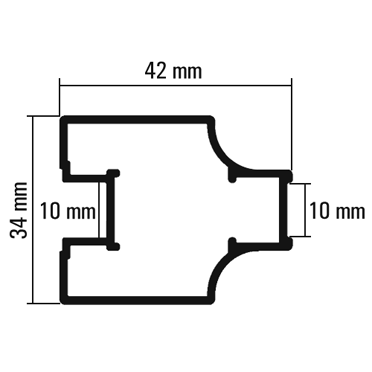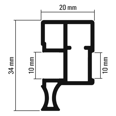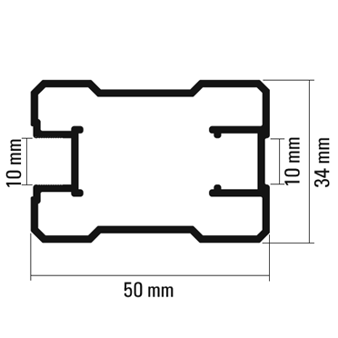 Pour laisser le sol intact, le profilé de plafond supporte ici le poids de la porte coulissante. Dans cette variante, le poids de chaque porte peut atteindre jusqu’à 60 kilogrammes. Une capacité de charge correspondante du plafond doit être garantie par le bâtiment. Les portes coulissantes sont guidées au sol par un patin.