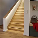 Se l´'intento è quello di illuminare i singoli gradini, la nuova striscia LED "Versa Stair", sviluppata appositamente per l'utilizzo sulle scale, è il prodotto da scegliere. Grazie ai numerosi accessori, è possibile applicarla su scale sia aperte che chiuse. La striscia LED aperta è disponibile nei colori bianco extra caldo, bianco caldo e bianco neutro e viene montata con una canalina ChannelLine. Il profilo in alluminio può essere installato alternativamente sul gradino (ChannelLine D o D2) o inserito a filo nello stesso (ChannelLine B e C). I pratici collegamenti a spina consentono di preassemblare i singoli elementi in falegnameria e collegarli successivamente in loco. La sottile canalina per cavi, invece, può essere strategicamente nascosta nella fiancata. La praticità a portata di mano: con un unico alimentatore è possibile controllare fino a 15 gradini con una larghezza massima di 1,20 metri.