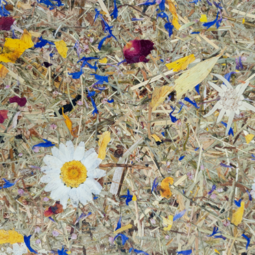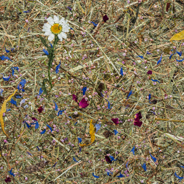 La superficie di erbe e fiori alpini combina il fieno alpino naturale e i petali colorati e profumati di margherite, erica, fiordalisi, girasoli, lavanda e rose per creare un tripudio di colori unico. Vedere, sentire e annusare i fiori profumati, le erbe e le piante aromatiche.