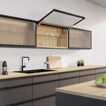Voor hoogglans, houten fronten of aluminium kaders - het Kinvaro klepsysteem ziet er niet alleen mooi uit, het biedt ook veel vormgevingsmogelijkheden.