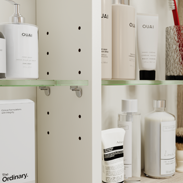 Onze tip: voor de glasplaten in de spiegelkast kunt u kiezen voor bijvoorbeeld onze glasplaatdragers Hettich Sekura 8.