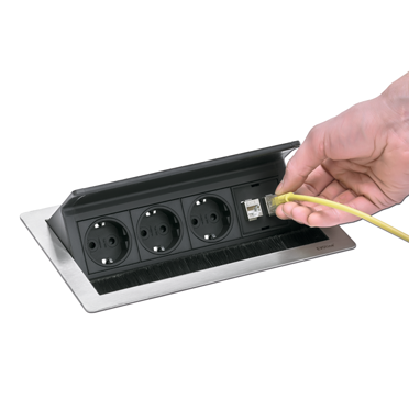 De FlipTop Push is een elegante inbouwoplossing voor alle werkplekken, waar stroom, data en multimedia gebruikt wordt. De gemakkelijk verwisselbare modules voor data en multimedia hebben een nagenoeg grenzeloze flexibiliteit, indien de gebruikersbehoeften op de werkplek veranderen.