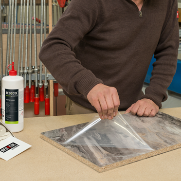 De design oppervlakken worden als oppervlak en als backing gebruikt. Voor de verwerking dienen alle materialen te acclimatiseren.
