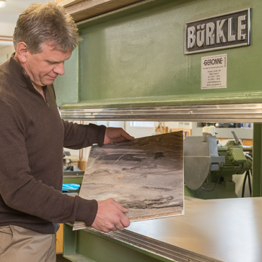 De decorplaten na het persen ongeveer 16 uur laten afkoelen. Bij juiste verlijming kan het werkstuk vervolgens bijgefreesd en verder verwerkt worden.