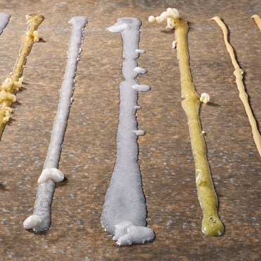Adezivii PUR sunt disponibili în diverse vâscozități. Gama variază de la adezivii lichizi la cei păstoși și aceștia pot fi aleși în funcție de aplicație. De exemplu, adezivul păstos este adecvat în special pentru lipirea verticală și este foarte popular în aplicațiile mobile de pe șantier. Varianta mai fluidă își găsește mai degrabă aplicabilitatea pe suprafețe mai mari și în atelier.